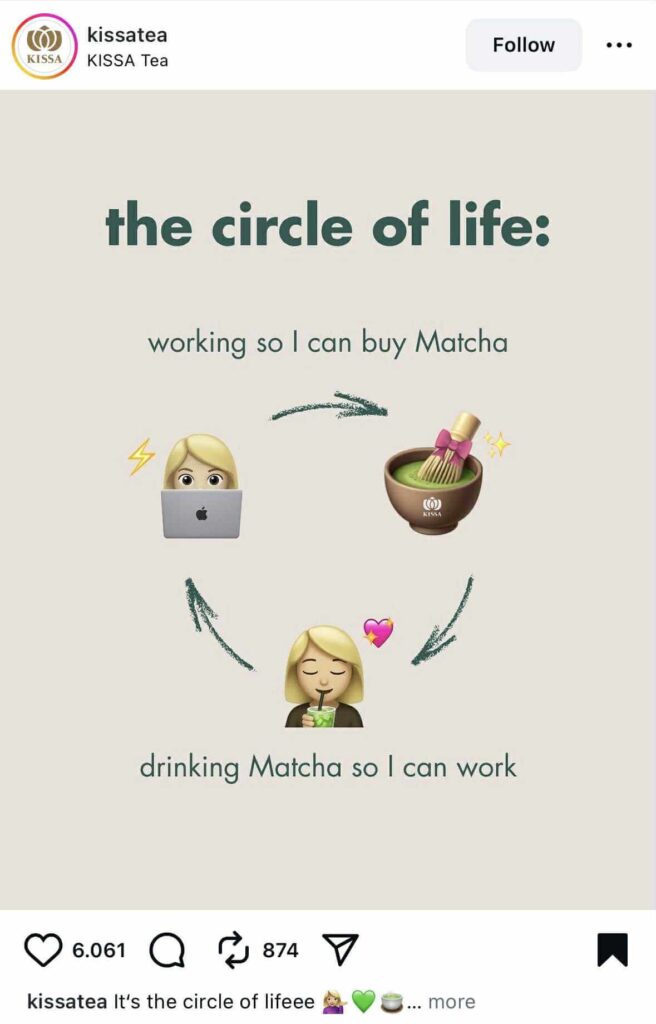 Put two to three things in a circle using emojis to show a repeating cycle in your life, like 💻 → 🍵 → 💸 for working so I can buy matcha, drinking matcha so I can work.